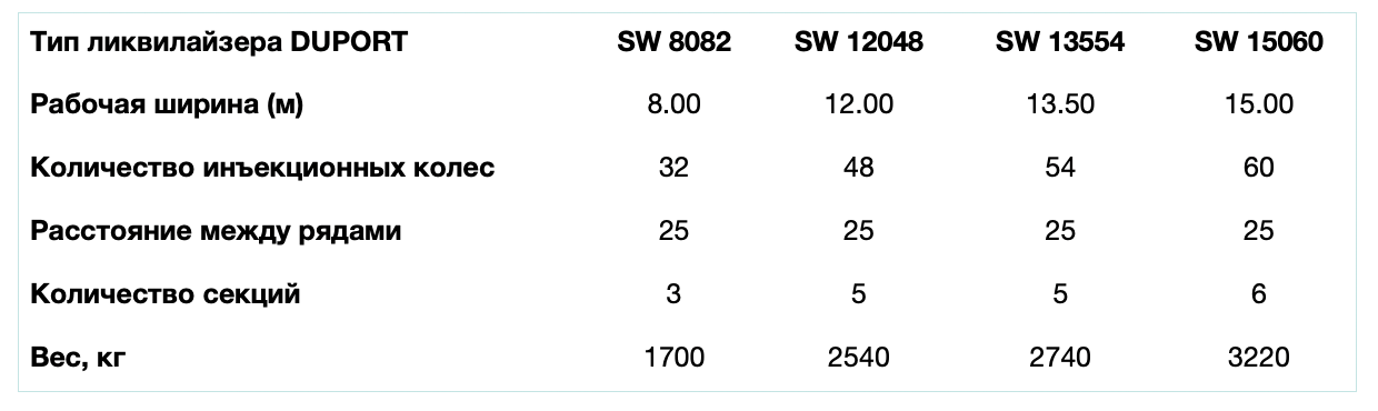 Ликвилайзеры DUPORT были специально разработаны для инъекций высококачественных жидких удобрений, которые также могут применяться стандартными опрыскивателями. Ликвилайзер состоит из прочной рамы с инжекторными колесами. С помощью длинных игл на инжекторном колесе жидкое удобрение вводится на нужную глубину в почве прямиком к корневой системе.